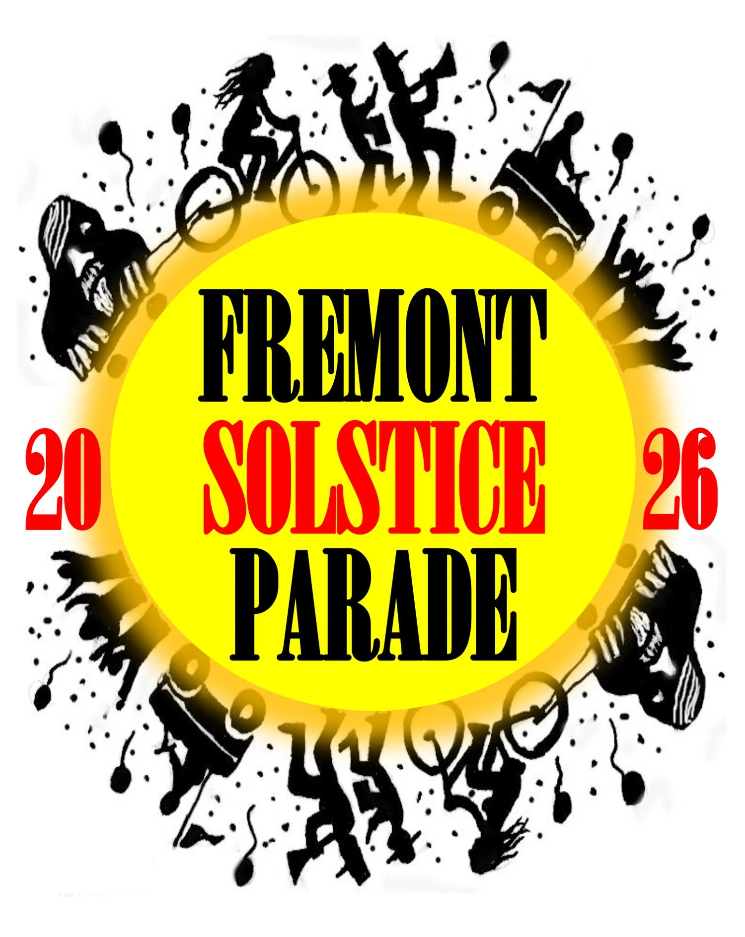 Doug’s concept uses a bold silhouette style to capture the energy of the parade, featuring a nude bike rider, Fremont Troll, marching band, parade float, and cheering crowd in a lively, repeating composition.