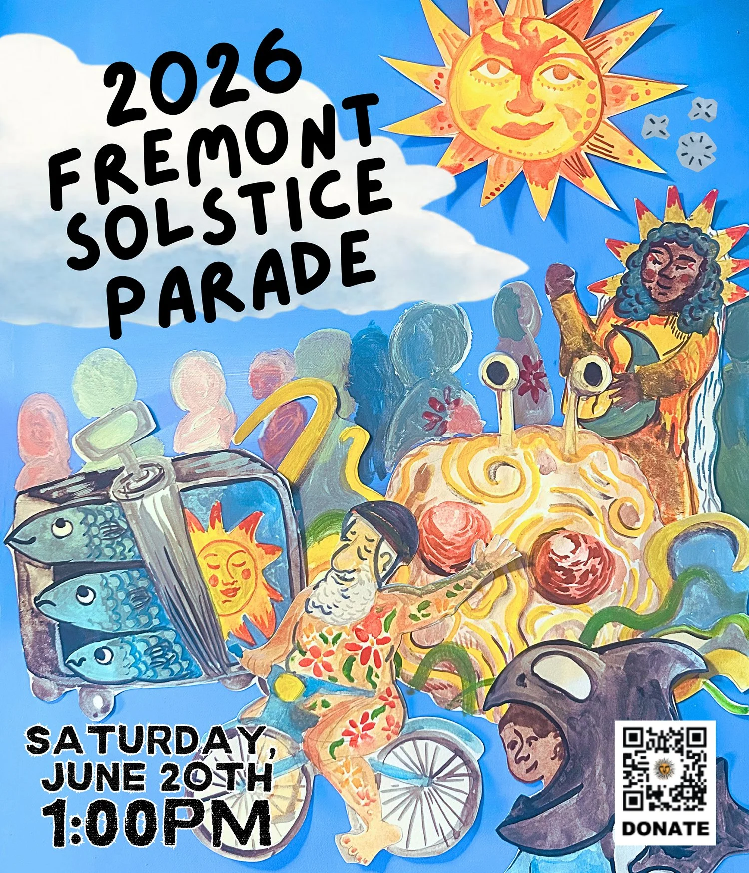 Sarah M brings a playful and irreverent concept to the mix, centered around the iconic Flying Spaghetti Monster—leaning fully into the Solstice Parade’s spirit of humor and absurdity.